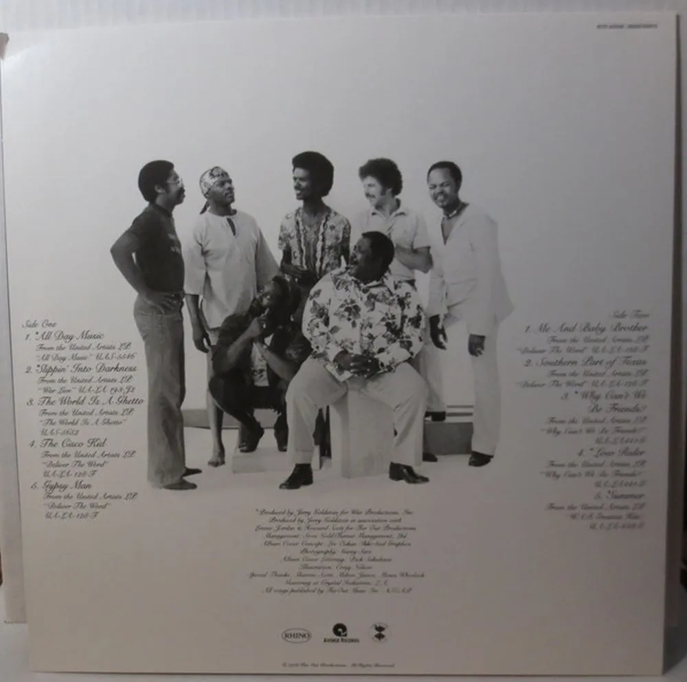 All Day Music, Slippin' Into Darkness, The World Is A Ghetto, The Cisco Kid, Gypsy Man, Me And Baby Brother, Southern Part Of Texas, Friends?, Low Rider, Summer
