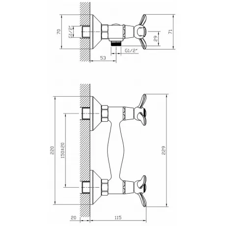 Материал изготовления корпуса - латунь. Жесткая подводка. Монтаж - настенный
