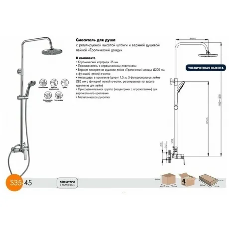 Описание товара Смеситель для душа Rossinka S35-45