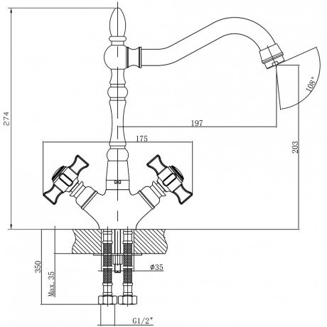 Материал изготовления корпуса - латунь. Гибкая подводка. Монтаж - настольный, на борт