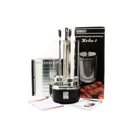 Электрошашлычница ENERGY НЕВА-1 имеет мощность 1000 Вт. Прибор рассчитан на 5 шампуров, при этом масса одновременной загрузки составляет не более 1 кг. Нагревательный элемент защищен стеклянной трубкой. Время приготовления шашлыка - около 15 минут.