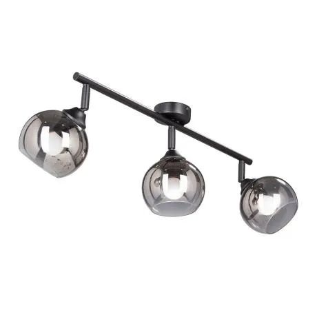 Люстра V4313-1/3PL, 3хЕ27 макс. 60Вт ,количество ламп: 3, максимальная мощность лампы (Вт): 60, цоколь: E27 , лампы в комплекте: нет , площадь освещения, м2:9, цвет основания :черный матовый, тип крепления:планка, Гарантия: 60 месяцев, материал плафонов: стекло , размеры изделия(см):H22 B23 L69