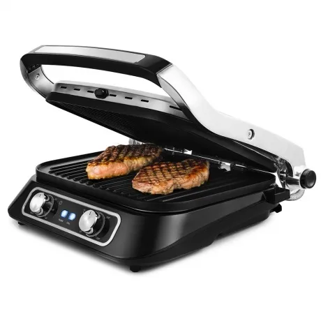 Купил данный гриль своей девушке в подарок. Протестили уже не один раз, еда получается ооооочень вкусной, с красивым рисунком в полоску. Жарим на нем все (почти) - стейки из говядины, свинины, лепешки с разными начинками. Еда не пригорает, хотя мы жарим без масла. Удобные съёмные панели, легко моются и ставятся обратно-это несомненно плюс. При первом использовании чувствовался какой то запах пластика паленного, но потом больше этого не замечали. Единственный минус-очень короткий шнур, но вроде хватает.
