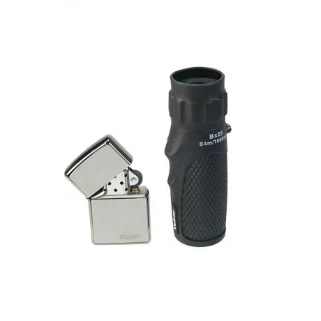 Монокуляр Veber Ultra Sport 8x25 имеет черный, обрезиненный, влагозащищенный корпус. Окуляр оснащен диоптрийной подстройкой под разное зрение. Оптика — оптическое стекло с трудноистираемым (синим) просветляющим покрытием. Благодаря конструкции призм оборачивающей системы (Roof), прибор получился максимально компактным. Ему всегда найдется место и в кармане рубашки и в дамской сумочке и в бардачке машины. Мало ли что понадобится быстро рассмотреть издали — номер дома или машины, часы работы магазина, кульминационный момент в спорте или соседнего рыбака (а рыбак рыбака должен видеть издалека!).