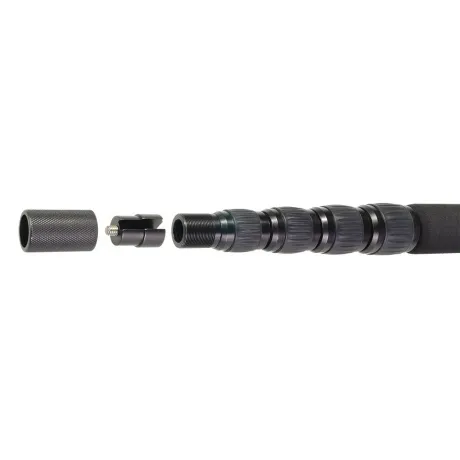 Алюминиевая телескопическая микрофонная удочка (бум) GreenBean MicHolder 240 выдвигается на длину 2,4 м из сложенного состояния длиной 64,5 см, вес 0,61 кг. На конце удочки находится винт с резьбой 1/4 (в комплекте переходник 3/8). Конструкция содержит 5 сегментов, что облегчает выбор нужной длины, хранение и транспортировку. Секции выполнены из алюминиевого сплава с толщиной стенки 1 мм, алюминиевые цанговые зажимы с резиновыми накладками надежно фиксируют секции. Благодаря прецизионно сбалансированной конструкции секции выдвигаются очень плавно и фиксируются без люфтов. Внутри удочки предусмотрен канал для кабеля. Рукоятка из вспененного материала длиной 395 мм позволит комфортно удерживать удочку продолжительное время. В комплекте поставляется чехол с наплечным ремнем. Микрофонная удочка MicHolder 350C предназначена для использования в видео- и кинопроизводстве, позволяет поворачивать и направлять микрофон контролируемым образом, а также достаточно быстро передвигаться за источником звука.