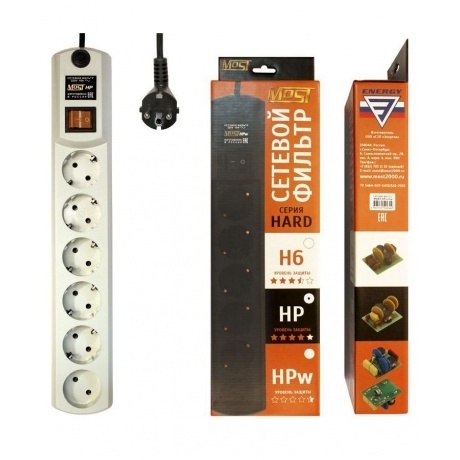 Описание товара Сетевой фильтр Most HP 5м (6 розеток) белый
