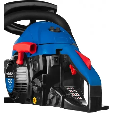 Бензопила Зубр ПБЦ-400 40П представлена в эргономичном корпусе красного цвета и дополнена удобной для удержания ручкой с резиновой накладкой, исключающей скольжение во время работы. В основе используется двигатель на 40 куб.см., действующий с мощностью 1500 Вт или 2.0 л.с. Используется цепь с 57 звеньями и шагом 9.3 мм. Направляющая шина имеет длину 40 см (16”) и паз 1.3 мм (0.050”).