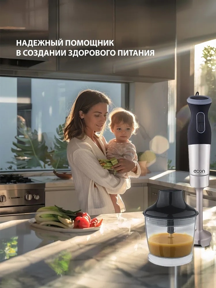 Надежный, стильный и удобный блендер ECO-433HB станет незаменимым помощником на вашей кухне в любое время года. С ним приготовление супов, вторых блюд, салатов, соусов, выпечки и десертов, зимних заготовок и других ваших любимых блюд станет приятным и быстрым. А особенно блендер является незаменимой вещью для тех, кто вынужден придерживаться диетического питания из-за проблем с ЖКТ и людей старшего возраста, которым иногда трудно пережевывать жесткую пищу.