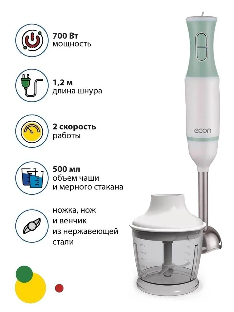 Описание товара Блендер погружной Econ ECO-432HB White-Pistachio