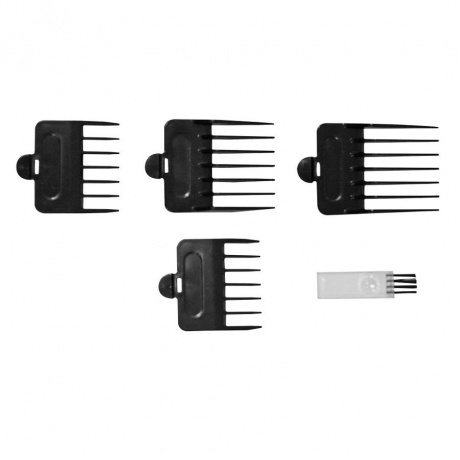 комплект насадок (3, 6, 9, 12 мм), расческа, ножницы, масло, щетка, документация