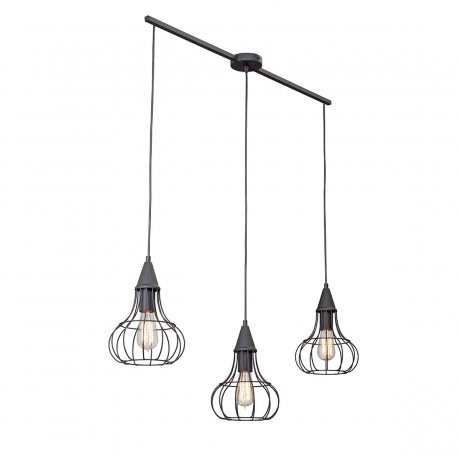 Подвесной светильник V4180-1/3S — модель от российской компании Vitaluce. Основа изделия выполнена из металла черного цвета, плафон из металла черного цвета. Будет хорошо смотреться в гостиной, кафе, кухне, над кухонным островом и удачно впишется в интерьер в стиле лофт. Модель имеет 3 плафона и 3 лампы, оснащена цоколем E27 с максимальной мощностью лампочки 60 Вт и рассчитана на освещение площади до 9 кв. м. Длина — 94 см. Степень защиты от влаги и пыли — IP20. Устанавливается на металлический крюк и поддерживает подключение диммера.