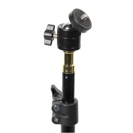 Godox 190F - алюминиевая стойка-тренога с 5-секционной телескопической центральной колонной, на конце которой закреплен несъемный латунный шпигот диаметром 5/8” с резьбой 1/4” и шаровой головкой. Стойка предназначена для установки цифровых камер для съемки в фото- или видеостудии, а также на выезде. Длина стойки в сложенном виде - 49 см, максимальная высота 188 см, вес 1.4 кг. Стойка выдерживает осевую (вертикальную) нагрузку до 3 кг. Секции центральной колонны диаметром 29, 26, 22, 19 и 16 мм изготавливаются из легкого и прочного алюминиевого сплава. Перед покраской трубы проходят калибровку - для особенной плавности хода секций, с небольшим, равномерным и дозированным усилием скольжения на всей рабочей длине. Секции фиксируются металлическими винтовыми зажимами с крупными ручками из прочного ABS пластика. Реверсивные ноги для компактного хранения имеют 2 телескопические секции диаметром 19 и 16 мм. Длина стойки в сложенном виде всего 48.5 см. Стойка Godox 190F снабжена шаровой головкой с металлическими корпусом и шаром, а также металлическим винтом на конце (с посадочной резьбой 1/4”), на который устанавливаются, например, цифровые камеры. Установленное оборудование может вращаться вокруг своей оси на 360 и наклоняться вперед в пределах 90°.