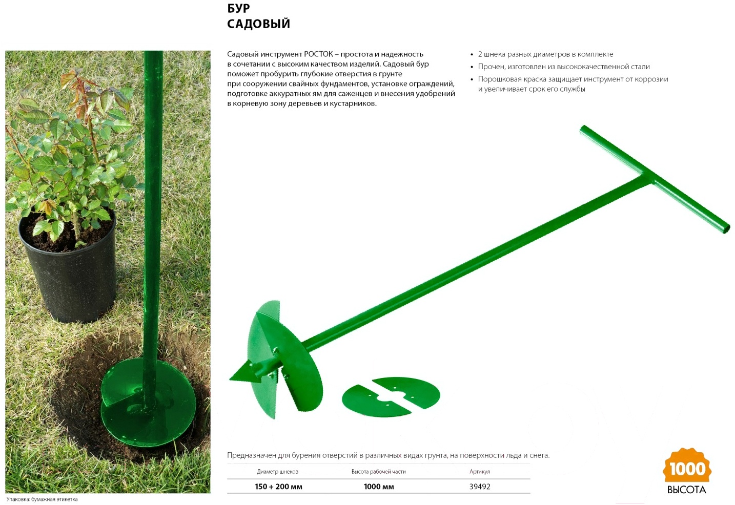 Отзывы о товаре Бур садовый ручной Росток 39492