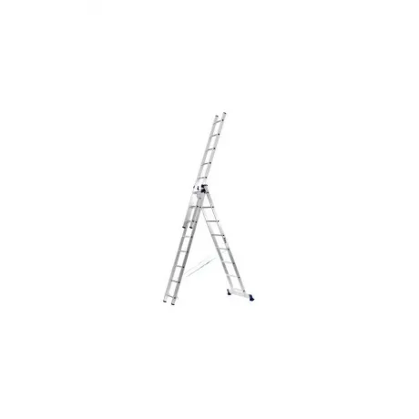 Универсальная трехсекционная лестница со стабилизатором СИБИН 3х8 ступеней 38833-08 используется для сбора урожая, для ремонта фасада здания, в быту. В зависимости от положения частей представляет собой стремянку, стремянку с выдвижной секцией или приставную лестницу. Для устойчивости предусмотрены противоскользящие наконечники, позволяющие разместить данную модель на различных поверхностях.