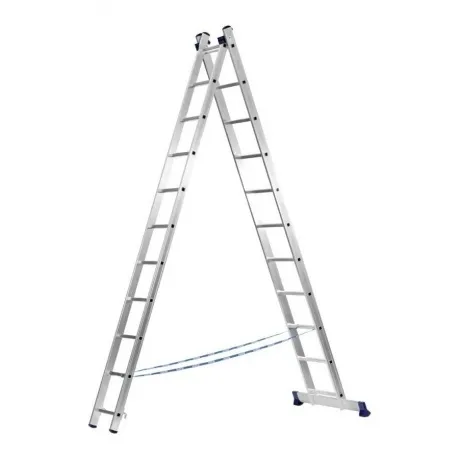 Универсальная двухсекционная лестница СИБИН 11 ступеней 38823-11 предназначена для различных хозяйственных работ. Выполнена из качественных материалов, отличается легкостью и удобством в эксплуатации. В зависимости от положения частей представляет собой стремянку или приставную лестницу. Для повышения надежности данная модель оснащена рифлеными ступеньками. Длительный срок службы достигается благодаря тому, что лестница изготовлена из устойчивого к коррозии алюминия.