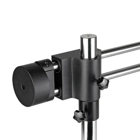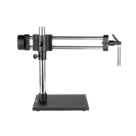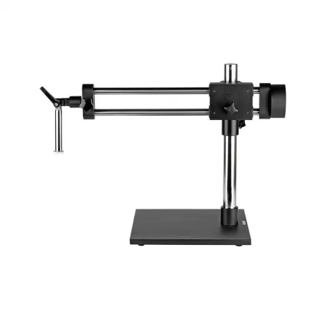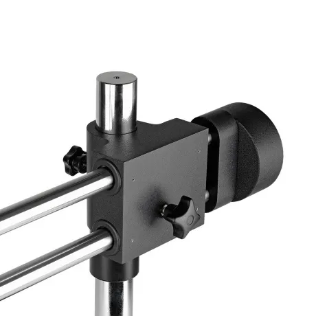 Универсальный штатив TD-3 с пятью степенями свободы. Штатив обеспечивает возможность перемещения оптической головки в горизонтальном направлении до 330 мм и вертикальном направлении до 260 мм. Так же обеспечивает возможность изменять угол наклона оптической головки до 45 градусов. Максимальное расстояние от вертикальной штанги до оптической оси - 560 мм, что позволяет исследовать объекты габаритом до 1000 мм. Конструкция штатива (две параллельные штанги и противовес) обеспечивают параллельность передвижения в горизонтальном направлении.