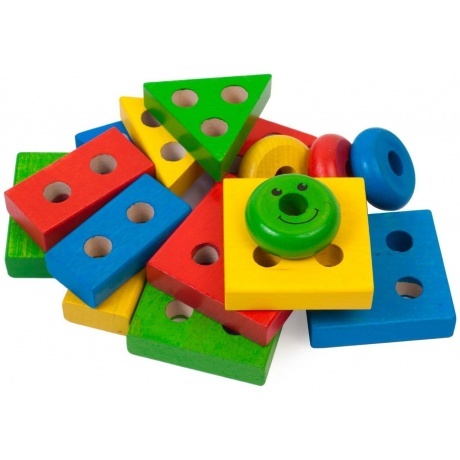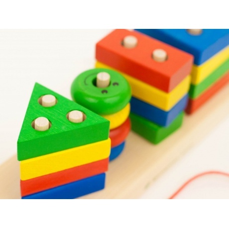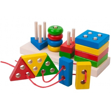 Набор "Геометрик" — это конструктор из дерева. В нем спрятано сразу три развивающих игры — сортер, мозаика и шнуровка. Играя с "Геометриком" ребенок познает цвета, геометрические фигуры, учится считать, собирать пирамидки и другие конструкции. Ребенка можно научить надевать фигурки, как на штырьки, так и на шнурок, это координирует движения и развивает моторику. Также взрослые могут рассказать малышу о цветах и показать как сортировать фигурки по цвету. То же самое можно проделать с формами — научить маленького исследователя отличать круг от квадрата и так далее.