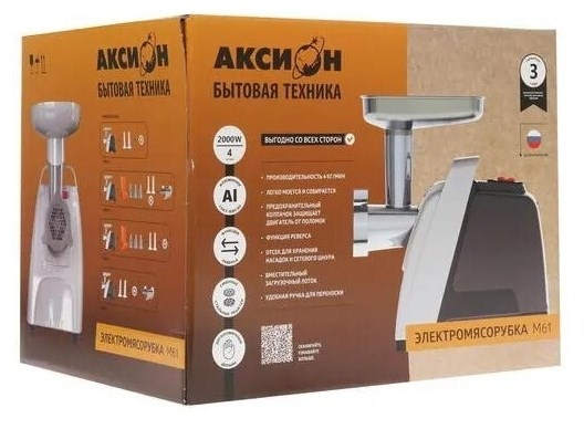 Описание товара Мясорубка Аксион М 61.04 черный/серебристый