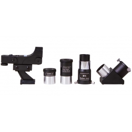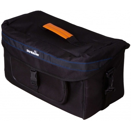 Sky-Watcher SKYMAX BK MAK90EQ1 понравится тем, кто не любит расставаться с телескопом во время поездок и путешествий, а также предпочитает вести наблюдения вне городской засветки. Эта модель собрана по схеме Максутова-Кассегрена, поэтому весьма компактна и не занимает много места. При этом в телескоп видно многое: Луну, планеты Солнечной системы, туманности, галактики и звездные скопления. А так как в комплект поставки включено диагональное зеркало, телескоп можно использовать и в качестве зрительной трубы – для изучения наземных ландшафтов. Среди других телескопов Sky-Watcher SKYMAX BK MAK90EQ1 выделяется благодаря настольному штативу. Он используется вместо стандартной треноги. Телескоп можно поставить на стол, например, на веранде загородного дома или на балконе городской квартиры. Штатив легко и удобно складывается, что обеспечивает комфорт в дороге. И хотя многие настольные телескопы комплектуются упрощенными монтировками или монтировками азимутального типа, эта модель – исключение. Оптическая труба установлена на EQ1 – экваториальную монтировку, с помощью которой удобно следить за перемещением астрономических объектов по небосклону. Этот тип монтировки предпочтительнее при изучении космоса. Для управления используются ручки тонких движений. Чтобы вам было удобно путешествовать с телескопом, в комплект поставки включена текстильная сумка. У нее есть удобная ручка для переноски и плечевой ремень. В сумку легко помещаются оптическая труба, монтировка, штатив и все комплектные оптические аксессуары.