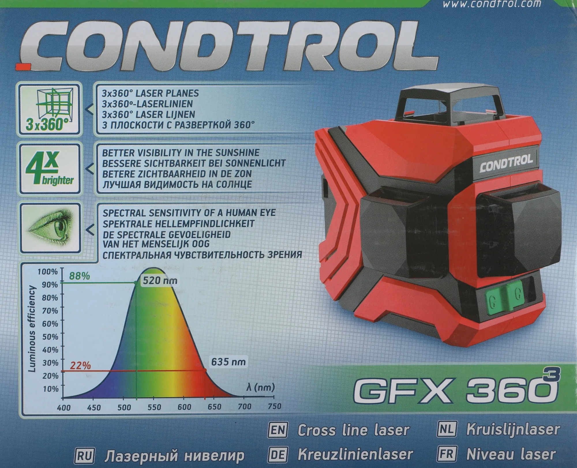 Лазерный нивелир CONDTROL GFX360-3 - описание товара, его характеристики, фото и цены представлены на карточке товара. Чтобы купить этот товар по цене 8323 руб., свяжитесь с нами по телефону 8(800)505-43-75 в Новосибирске, или оформите покупку через корзину.