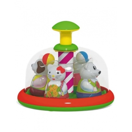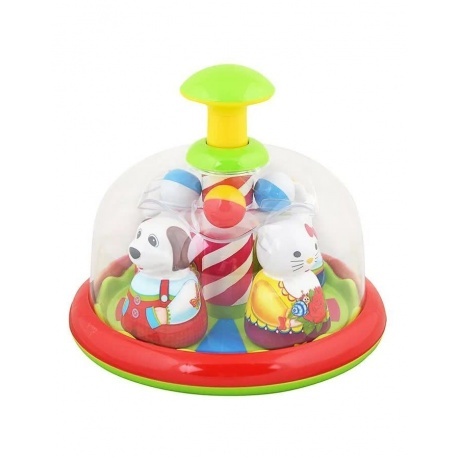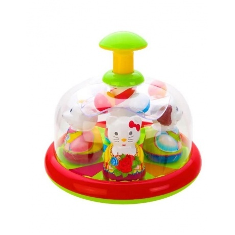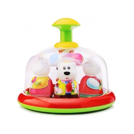 Юла-карусель «Аттракцион» - это развивающая игрушка для самых маленьких. Она напоминает детский аттракцион в парке с катающимися на нем зверушками. Малыш сам сможет запускать юлу-карусель и влиять на скорость вращения карусели, нажимая на большую кнопку сверху. После запуска зверушки в ярких костюмах начинают вращаться, привлекая внимание малыша. Под куполом юлы на прозрачной площадке находятся разноцветные шарики, которые при движении выкатываются к стенке купола, а при остановке возвращаются на свои места. Цветовое решение игрушки полностью отвечает особенностям младенческого восприятия, поэтому яркая и цветная юла будет всегда приятна и притягательна для малыша. Мы уверены, что завораживающее вращение юлы и бодрящее звучание при движении подарит бурный восторг и замечательное настроение вашему ребенку.