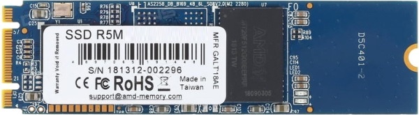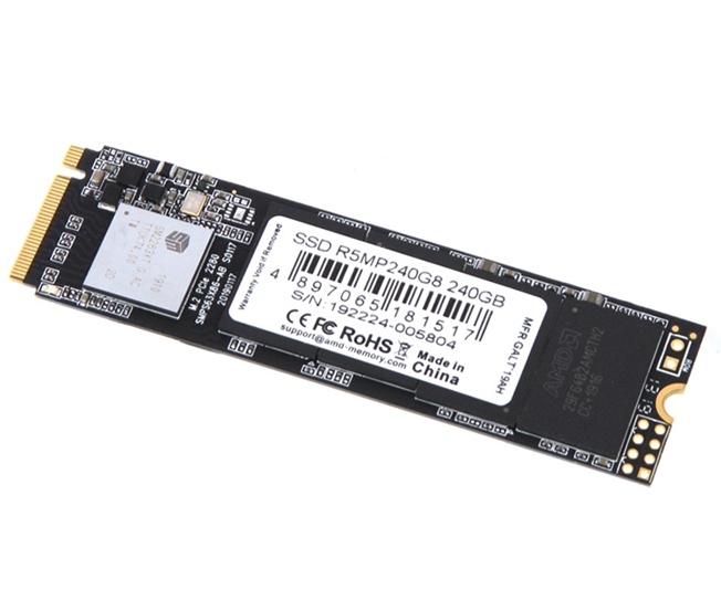 240-гигабайтный SSD M.2 накопитель AMD Radeon R5 NVMe Series [R5MP240G8] – высокотехнологичное решение от всемирно известной корпорации AMD. Для подключения устройства используется интерфейс PCI-E 3.0 x4. Ключ M.2 разъема – M. Модель соответствует стандарту NVMe. Форм-фактор устройства – 2280. SSD M.2 накопитель AMD Radeon R5 NVMe Series [R5MP240G8] обладает скоростными характеристиками, уровень которых достаточен для быстрой обработки крупных массивов информации. Устройство может с успехом эксплуатироваться в центрах обработки данных, а также в других системах, к производительности которых предъявляются особые требования. Максимальная скорость последовательного чтения, обеспечиваемая накопителем, равна 2100 МБ/с. Соответствующий показатель для записи – 1000 МБ/с. Помимо высокого уровня производительности накопителя, вы также по достоинству оцените безупречную надежность устройства. Модель рассчитана на длительную эксплуатацию в интенсивном режиме.