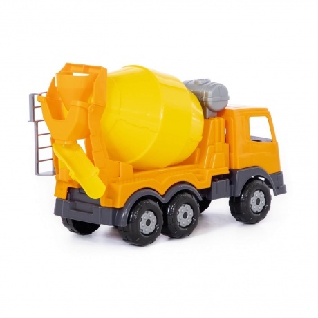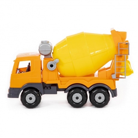 Автомобиль-бетоновоз всегда вызывает у детей повышенный интерес из-за своих функциональных особенностей. Конструкция автомобиля «Престиж» предполагает наличие колёс на трёх железных осях. Ёмкость для перевоза бетоновоза выглядит очень реалистично. Вращение ёмкости происходит путём использования специального рычага. Также конструкция предполагает наличие лестницы. Изготовлена игрушка из качественных материалов, она дополнит автопарк любого малыша и сделает игру ещё интереснее!