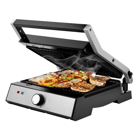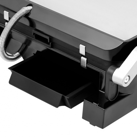 С помощью электрогриля Kitfort КТ-1653 можно приготовить мясо, рыбу, овощи, сосиски, бутерброды и многое другое! Ребристая поверхность и высокая температура панелей способствует быстрому приготовлению и появлению «полосатого» рисунка на продуктах. Конструкция гриля позволяет готовить в 2 режимах. В двустороннем режиме гриль закрывается крышкой, и продукты готовятся одновременно с двух сторон. В одностороннем режиме крышка гриля открывается на 180°, и гриль превращается в большую жаровню. Регулятор температуры является ручкой термостата. Он обеспечивает возможность плавно регулировать температуру и поддерживать её в процессе приготовления. Индикаторы показывают наличие питания, а также включение и отключение нагрева. Съёмные нагревательные панели изготовлены из алюминия с антипригарным покрытием. Благодаря конструкции панелей со встроенными нагревателями, нагрев и передача температуры на поверхность происходит эффективнее, и время прогрева и приготовления сокращается. Под панелями электрогриля располагается съёмный поддон для сбора жира. Это удобно, если, например, вы готовите жирное мясо. Поддон легко вынимается и моется.