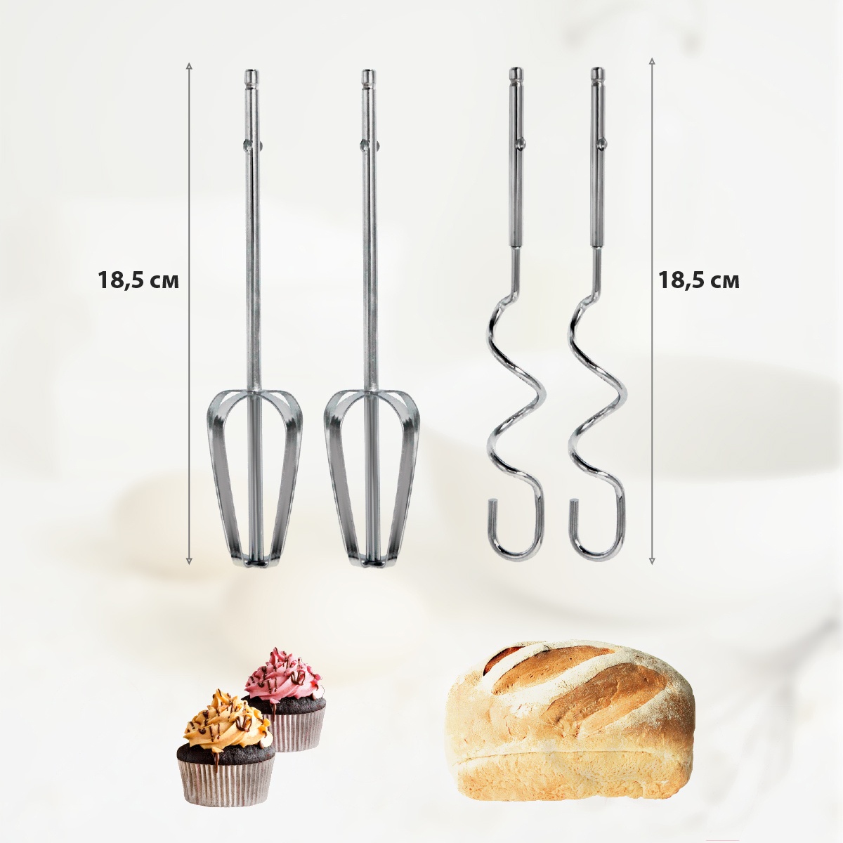Электрический миксер Atlanta ATH-3114 — незаменимый помощник для замешивания теста, кремов, соусов, муссов, пюре, сливок и др. В комплекте к модели идут 2 насадки-венчика, 2 насадки для замешивания теста.