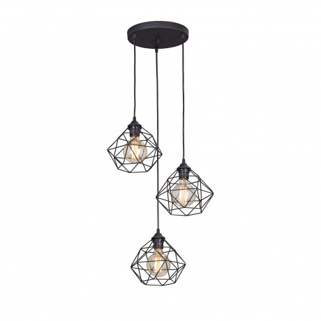 Подвесной светильник будет отлично смотреться в гостиной, кухне, офисе в стиле лофт. Светильник имеет 3 плафона из черного металла с цоколем 3xE27. Питание от сети 220V, общая максимальная мощность 120W позволяет осветить площадь до 6 кв. м.