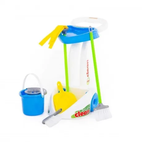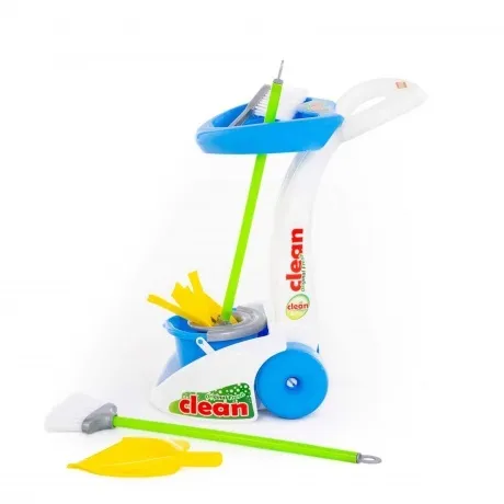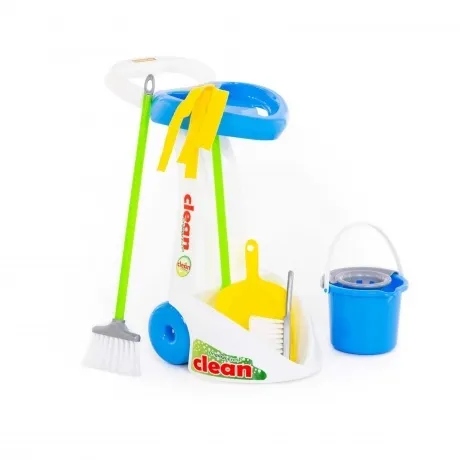 С набором «Чистюля» малыш играет и одновременно приучается к порядку. Игрушечный комплект полностью соответствует оригинальным приборам, которые используют современные хозяйки. Все принадлежности компактно расположены на передвижной тележке. В наборе имеются: швабра, большая и маленькая щётки, совочек, ведро с отжимом. У каждого прибора - своё место для хранения (для этого на тележке предусмотрены специальные платформы и ниши). Тележка на колёсах, поэтому её легко перемещать. Игрушечный комплект хозяйки компактный и занимает мало места. С его помощью ребёнок учится быть самостоятельным, развивается координация движений, моторика рук и воображение. Играть с набором «Чистюля» можно как в одиночку, так и командой. Инвентаря для уборки хватит на целую семью!