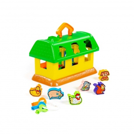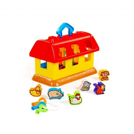 Развивающая игрушка для детей до 3-х лет в виде домика. На крыше домика 6 отверстий-пазлов в форме разных зверюшек, куда малыш подбирает и вкладывает соответствующие фигурки. У домика есть 3 дверки с замками, и чтобы открыть их и достать зверюшек, ребенок подбирает ключики по цвету и форме замка. Наклейки с животными на фигурки малыш наклеит сам. На крыше предусмотрена ручка для удобства перемещения домика. Домики развивающие рекомендуются для развития детей до 3-х лет, а также детям в дошкольных учреждениях образования, поскольку игра с ними развивает цветовосприятие, логику, память, а также мелкую моторику рук. Внимание! Товар представлен в нескольких видах без возможности выбора. Цена указана за 1 комплект.
