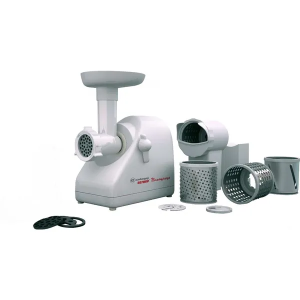 Электрическая мясорубка КЭМ-П2У 305 с полным набором насадок поможет Вам: с помощью насадки-мясорубки: приготовить фарш из домашней птицы, сырого и варенного мяса и рыбы, приготовить мясо типа «бефстроганов», приготовить печенье из теста. с помощью приставки-шинковки: произвести резку, шинковку и истирание овощей и фруктов, измельчить яйца, сваренные вкрутую, сыр. с помощью насадки-соковыжималки: получить сок с мякотью из мягких овощей, фруктов и ягод.