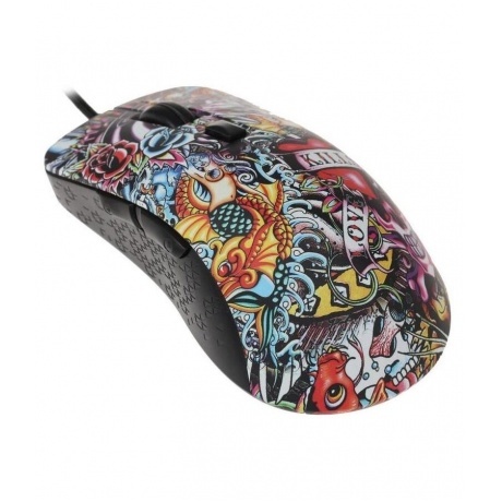 В дополнение к подсветке вся верхняя поверхности мыши покрыта красочным многоцветным рисунком, выполненным в технологии waterprinting. Это выглядит очень свежо и привлекает внимание даже тогда, когда подсветка выключена. Также присутствует подсветка колесика.