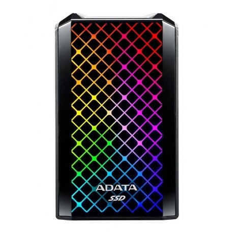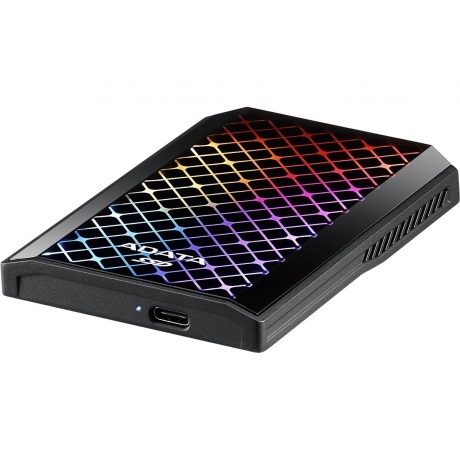 Накопитель в металлическом корпусе, обеспечивающем защиту от внешних воздействий и хорошее охлаждение, оснащен интерфейсом USB 3.2 Gen2x2. Скорость передачи данных, по словам производителя, достигает 2000 МБ/с — как при чтении, так при записи. Накопитель SE900G выпускается объемом 512 ГБ, 1 ТБ и 2 ТБ. Его габариты равны 110,8 х 66 х 16,5 мм, масса — 160 г. Накопитель оборудован разъемом USB-C. В комплект входят кабели, обеспечивающие подключение к системам с разъемами USB-C и USB-A. С первого взгляда на SE900G впечатляет его яркое сияние. Благодаря RGB подсветке, занимающей до 74% его передней крышки, внешний твердотельный накопитель выглядит потрясающе и прекрасно дополнит арсенал RGB устройств любого геймера