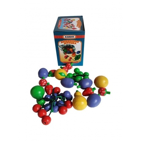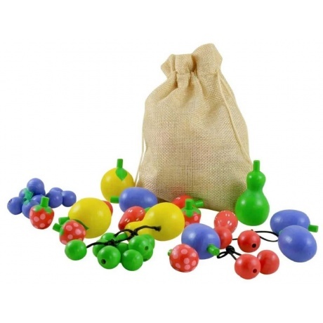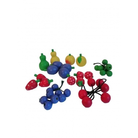 Замечательный многофункциональный набор. Можно готовить фрукты в игрушечной посуде, кормить кукол, считать и изучать цвета. Прокрашено идеально - дети играют уже несколько лет и набор все еще как новенький! Очень интересно и необычно выглядят виноград и вишни с веревочками (у детей они пользуются наибольшей популярностью). А еще можно использовать деревянные фрукты как образец для лепки фруктов пластилиновых.