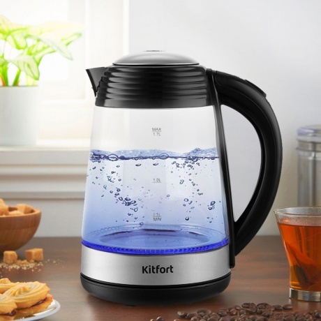 Мощный и вместительный чайник Kitfort КТ-6125 отлично подойдёт для тёплых встреч с семьёй и друзьями. За один раз в чайнике можно вскипятить до 1,7 л воды. Этого хватит, чтобы приготовить горячие напитки на большую семью!
