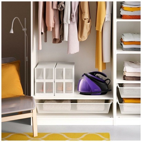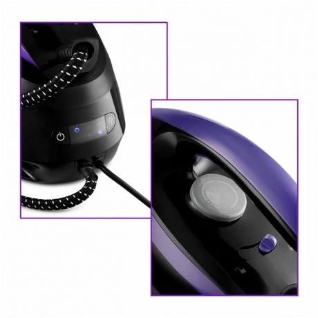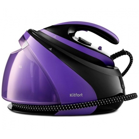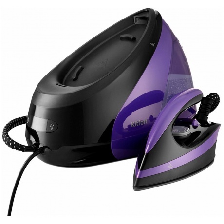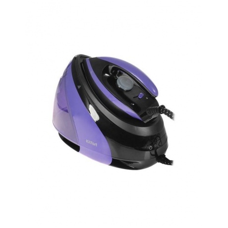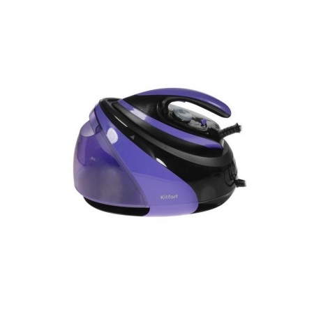 Паровая станция KITFORT КТ-980 выполнена в фиолетовом корпусе и служит одновременно отпаривателем и утюгом. Она содержит утюг и корпус, в который вставляется резервуар для воды объемом 1.3 л. При нагревании воды происходит ее испарение, в результате чего из отверстий подошвы выходит пар со скоростью 120 г/мин. Это позволяет прибору справляться с любыми задачами по уходу за тканями. Такая интенсивность пара позволяет работать с любыми тканями, разглаживая даже глубокие и неподатливые складки. Парогенератор KITFORT КТ-980 мощностью 3000 Вт подходит для вертикального и горизонтального отпаривания. Он поддерживает 5 режимов температуры и 3 режима подачи пара, что обусловлено наличием терморегулятора. Вы сможете настраивать прибор в зависимости от ткани. Керамическая подошва легко скользит по ткани, легко очищается от загрязнений. Система индикации включает в себя индикаторы готовности работы и нагрева. Утюг можно зафиксировать на корпусе станции, установив блокировку.
