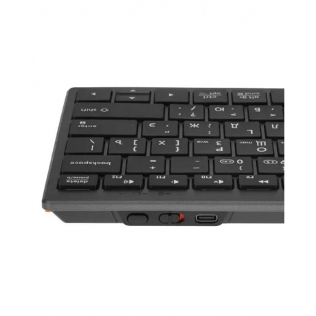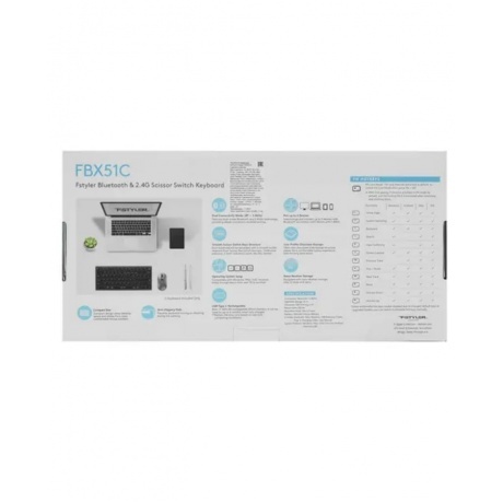 Клавиатура беспроводная A4Tech Fstyler FBX51C [1624624] с компактным форм-фактором удобна для работы и учебы. Устройство подключается по Bluetooth или через USB-адаптер. Также в комплект включен USB-кабель для зарядки встроенной АКБ. Прибор A4Tech Fstyler FBX51C [1624624] со стильным серым корпусом представлен в ножничном дизайне, напоминающем плоскую клавиатуру от ноутбука. 78 низкопрофильных клавиш нажимаются плавно и бесшумно. Кроме основных клавиш вы найдете ряд Fn для управления основными функциями.