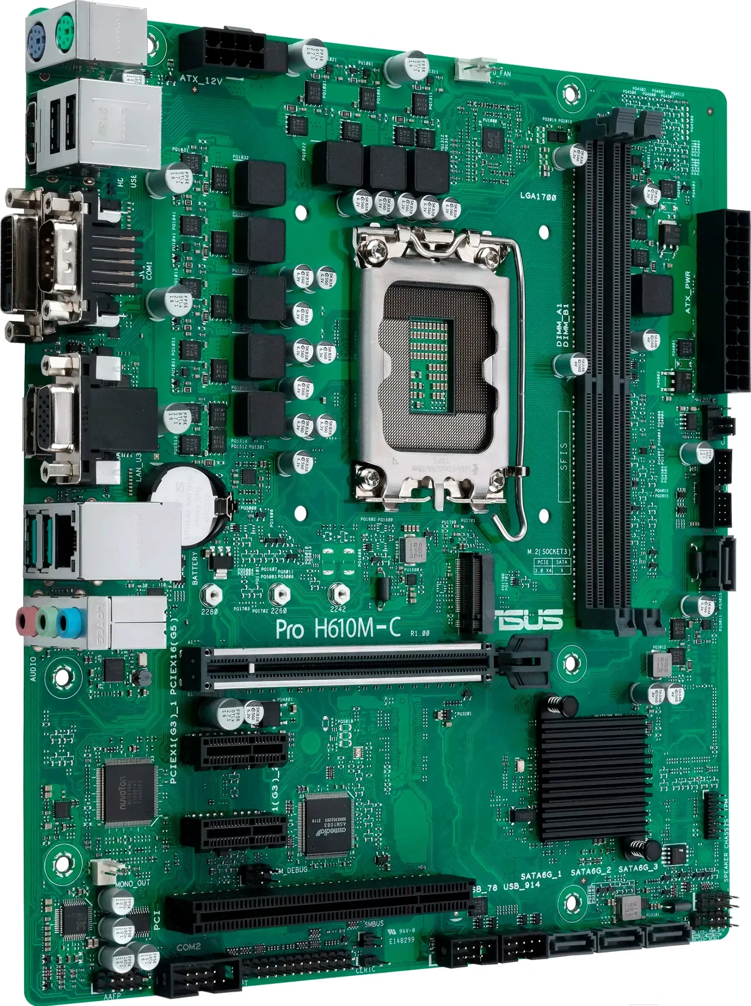 Материнская плата ASUS PRO H610M-C CSM корпоративного уровня является надежной основой для рабочей станции или ПК офисного класса. Она выполнена в формате Micro-ATX и содержит в основе чипсет Intel H610 с сокетом под установку процессоров Intel 12-го поколения. Для подключения комплектующих предлагаются 2 слота DIMM, 1 слот PCI-E x16, 2 слота PCI-E x1, 4 разъема SATA III и 1 разъем M.2.
