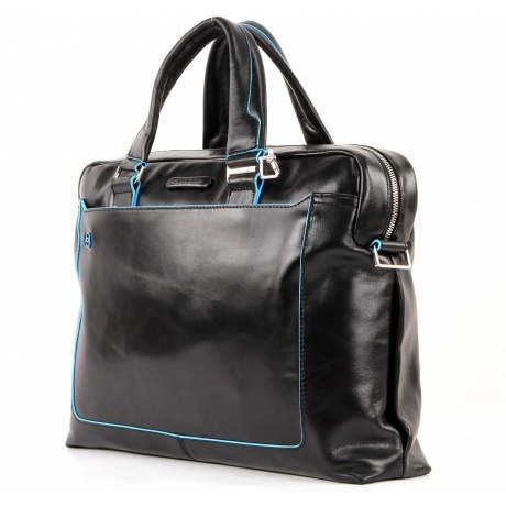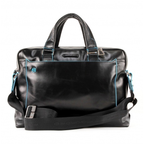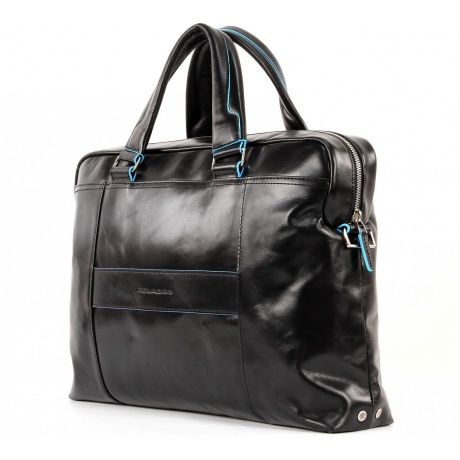 Сумка для ноутбука, с отделением и iPad Air/Air2 двумя ручками, карманами для зонтика и для бутылки от компании Piquadro, коллекция Blue Square. Натуральная телячья кожа черного цвета.