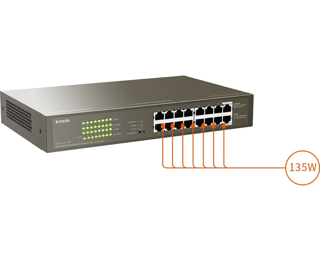 Описание товара Коммутатор Tenda TEG1116P-16-150W
