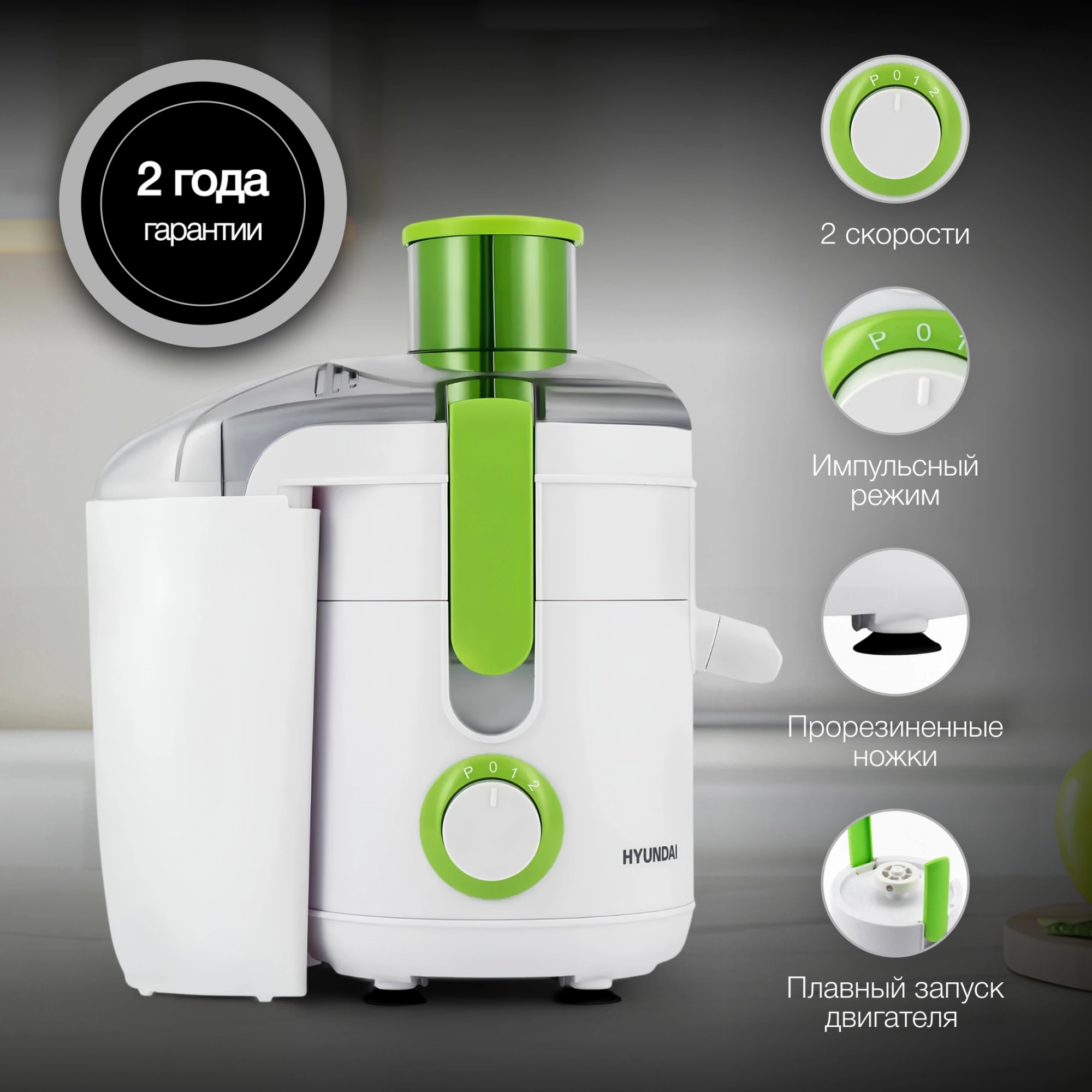 Описание товара Соковыжималка центробежная Hyundai HY-JE1615 белый/зеленый