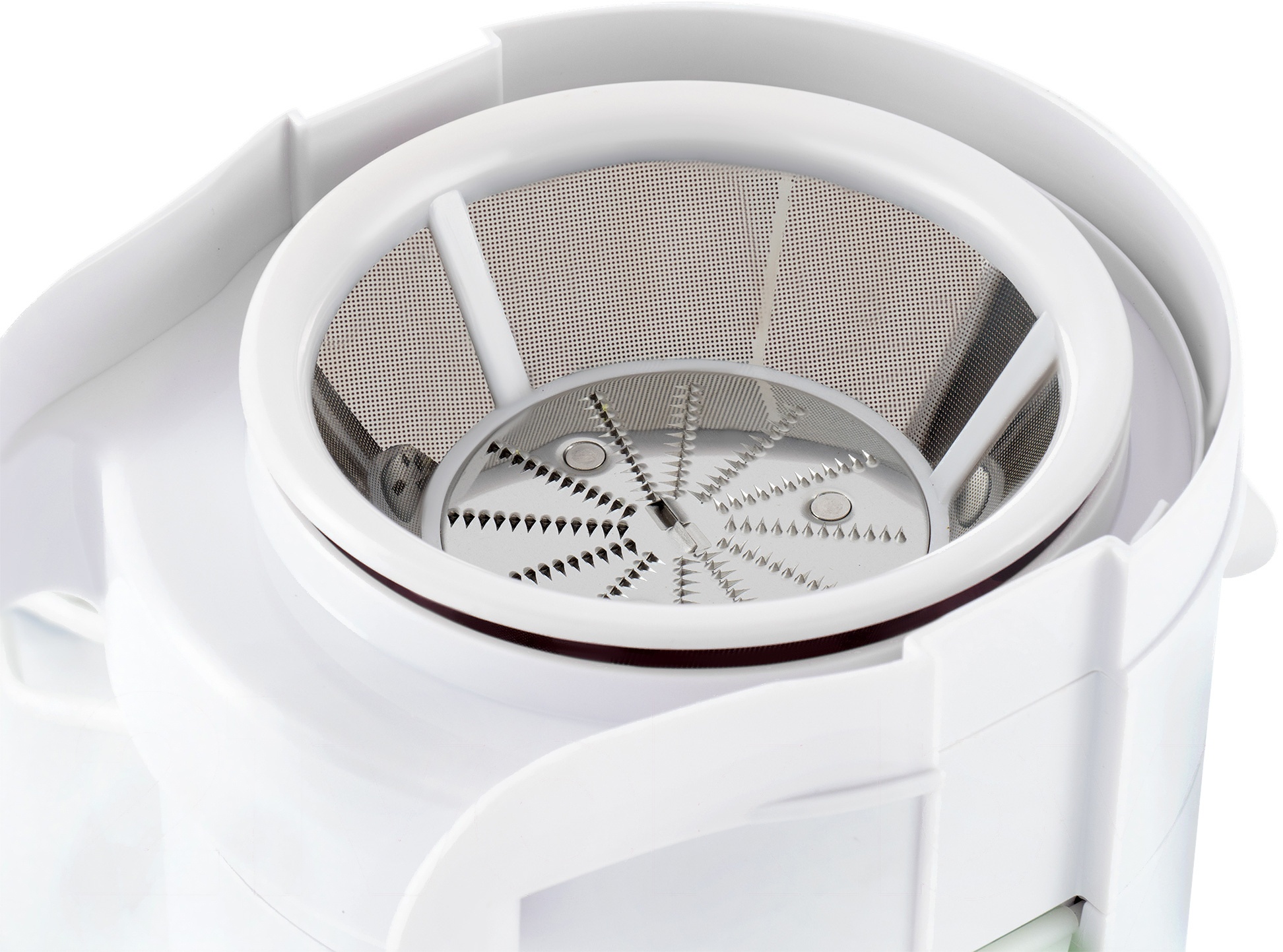 Hyundai HYJE1615 – это высокотехнологичная соковыжималка нового поколения со стильным минималистичным дизайном и интуитивным управлением. Устройство сочетает в себе лёгкий корпус, выполненный из качественно пластика, и сетку для фруктов из нержавеющей стали. Материалы, из которых выполнена данная модель, устойчивы к коррозии. Принцип работы Hyundai HYJE1615 построен на центробежной силе, чтобы быстро и качественно получать сок из плодов. Данную технологию используют все современные приборы подобного типа. Импульсное устройство двигателя соковыжималки позволяет работать с кратковременными паузами. Это нужно, чтобы обрабатывать особенно твёрдые плоды. С помощью мощных рывков-импульсов соковыжималка быстро и эффективно справляется и с овощами, и с фруктами. Управляется прибор посредством всего одного элемента интерфейса, с которым справится даже ребёнок. Он нужен для выбора необходимой мощности. Максимальное её значение у Hyundai HYJE1615 составляет 500 Вт. Этого более, чем достаточно для большинства плодов. Одним из преимуществ устройства является низкий уровень шума при высокой эффективности. Резервуар для сока данной модели составляет 400 мл, а ёмкость для мякоти имеет объём 1 литр. Hyundai HYJE1615 оснащён удобной круглой горловиной и системой «капля-стоп»: носик поднимается вверх, чтобы капли не попадали на стол. Прорезиненные ножки позволяют устройству прочно стоять и не двигаться с места во время работы.