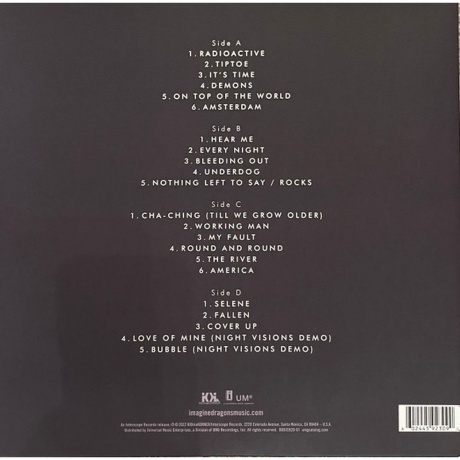 Лицензионное издание, выпущенное на виниле. В альбом вошли следующие композиции: Radioactive, Tiptoe, It's Time, Demons, On Top Of The World, Amsterdam, Hear Me, Every Night, Bleeding Out, Underdog, Nothing Left To Say / Rocks, Cha-Ching (Till We Grow Older), Working Man, My Fault, Round And Round, The River, America, Selene, Fallen, Cover Up, Love Of Mine (Demo), Bubble (Demo)