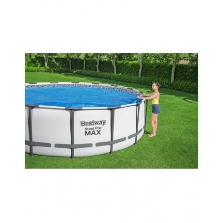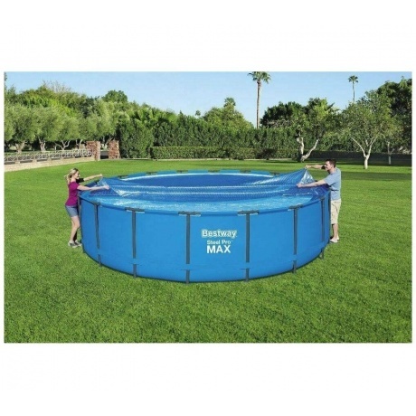 Защитное солнечное покрывало Bestway для предохранения бассейна от мусора, нагрева воды и сохранения тепла. Предназначено для бассейнов диаметром 549 см (d 527 см). Покрывало расстилается на водной глади бассейна закрывая всю открытую поверхность. Изготовлено из высококачественной пленки, имеет ячеистую структуру, которая преломляет и рассеивает солнечные лучи, что ускоряет нагрев воды и уменьшает отдачу тепла от воды во внешнюю среду.