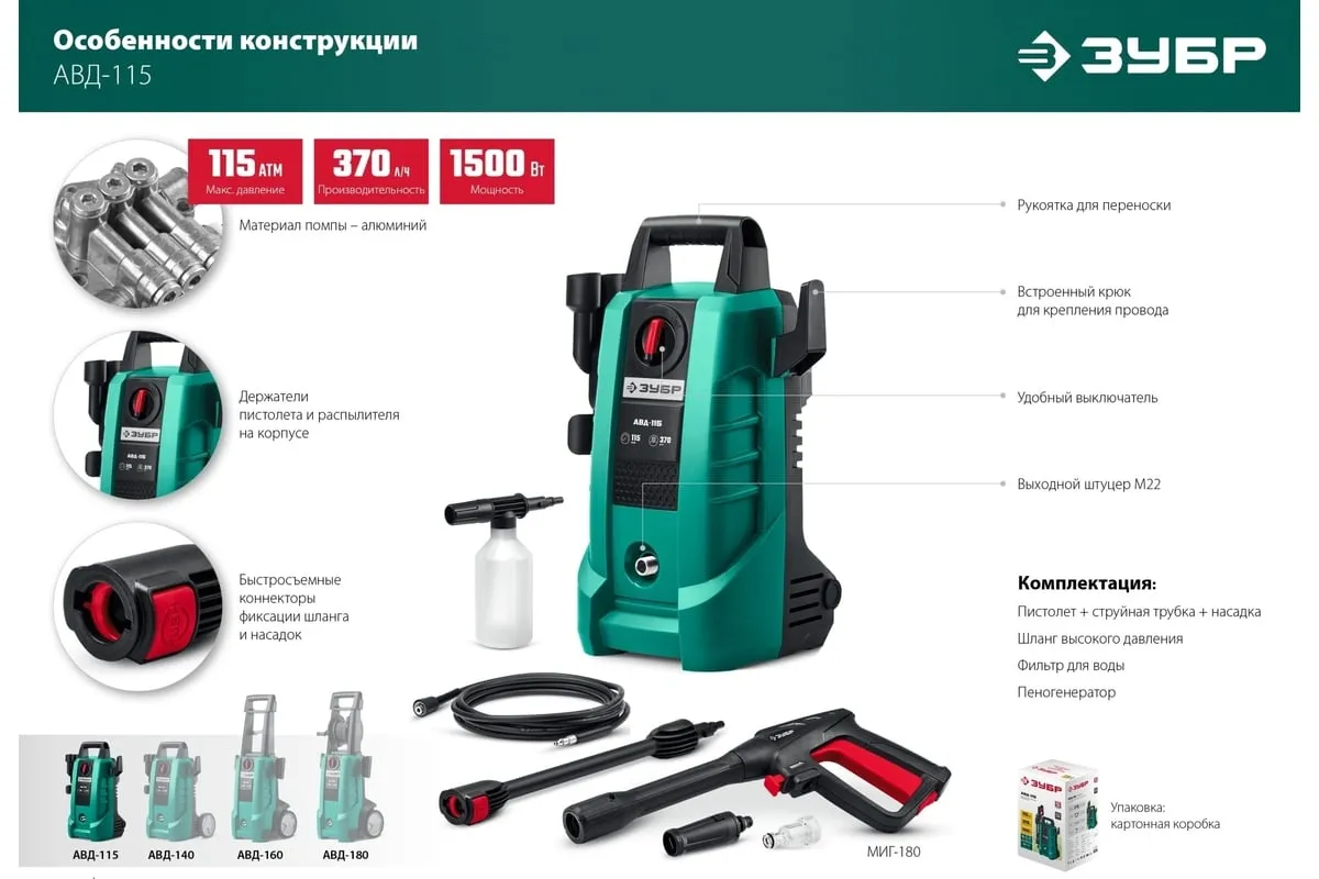 Описание товара Мойка высокого давления ЗУБР 115 Атм, 1500 Вт