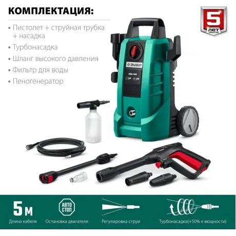 Мойка высокого давления Зубр серия мастер, АВД-140Мощное изделие для удаления любых загрязнений при помощи струи воды высокого давления. Благодаря системе полной остановки, помпа не работает при ненажатом пистолете – это экономит воду и ресурс изделия при неизбежных паузах в работе. Элегантный дизайн и удобная конструкция с держателями для аксессуаров делают работу с изделием комфортной. Регулировка выходной струи позволяет обрабатывать различные поверхности - автомобили, стены, велосипеды, напольные покрытия и т. п.