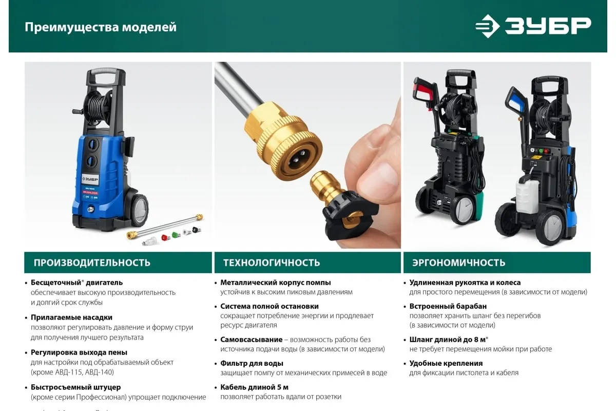 Описание товара Мойка высокого давления ЗУБР 180 Атм, 2300 Вт