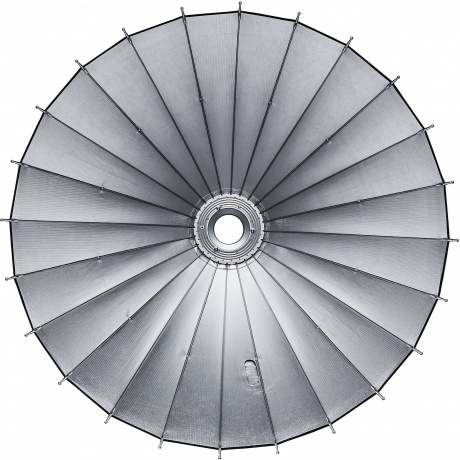 Параболический рефлектор Godox Parabolic P128Kit – большая светомодифицирующая насадка диаметром 1200 мм. Конструкция из 24 эластичных спиц делает модификатор по форме близким к круглому источнику. Рефлектор имеет серебристую внутреннюю поверхность с высокой отражающей способностью, помогает создавать превосходное освещение с настраиваемым углом светового потока.